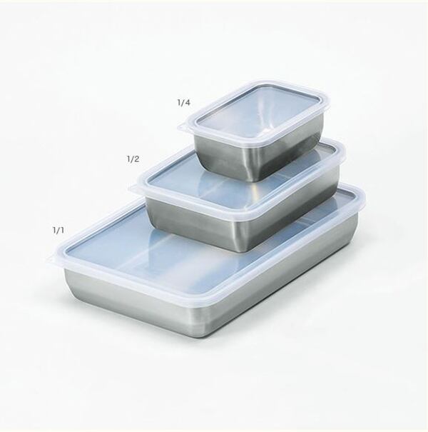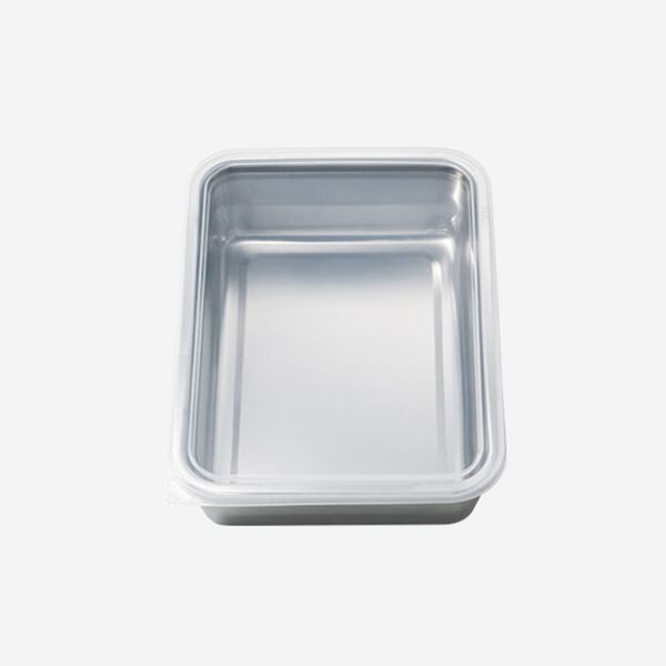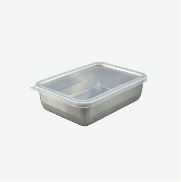 下ごしらえや保存に使える蓋付きバット。角型で調理スペースを邪魔せず、効率良く作業ができます。